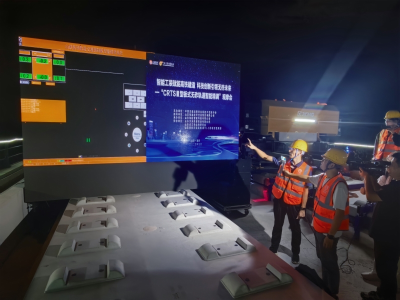 山东铁投智能科技工程有限公司成立以来,聚焦智能建造、智能运维技术体系与高端装备自主化两大核心突破点,锚定无砟轨道智能化施工,大力开展科技创新与成果转化,成功研发CRTSIII型板式无砟轨道智能化施工装备,轨道板定位精度突破了传统人工精调精度的瓶颈,实现了多项技术突破,达到国际领先水平。