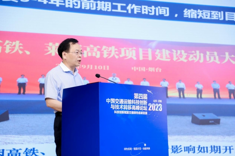 论坛秉承“促进成功转化 建设交通强国”宗旨,聚焦交通强国建设绿色低碳转型、科技创新与技术转移、新旧动能转换促进高质量发展等领域进行深度交流,共促科技成果转化,共推高质量发展,共助交通强国建设。在5月24日上午的专题分享环节,集团工程管理部部长苏敬强作为嘉宾代表做《“轨道上的山东”助力交通强国建设》专题分享,对集团在探索创新地方高速铁路建设运维技术、构建省域高速铁路智能建设管理体系和铁路智能化管理平台建设等相关情况进行了宣介。