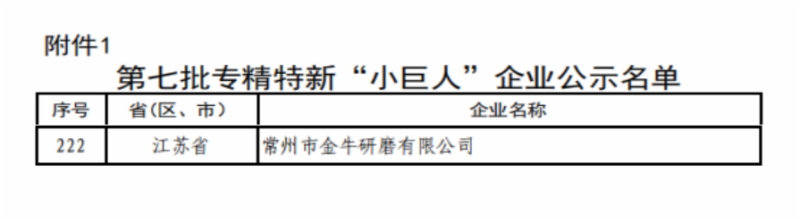 近日,工信部2025年国家级专精特新“小巨人”企业名单公布,谈球吧权属博深股份公司子公司常州市金牛研磨有限公司(简称金牛研磨)成功入选2025年专精特新“小巨人”企业名录。
