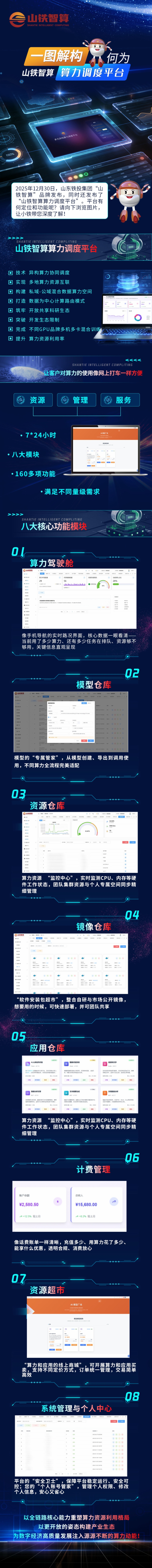 2025年12月30日,谈球吧"山铁智算"品牌发布,同时还发布了"山铁智算算力调度平台"。平台有何定位和功能呢?请向下浏览图片,让小铁带您深度了解!