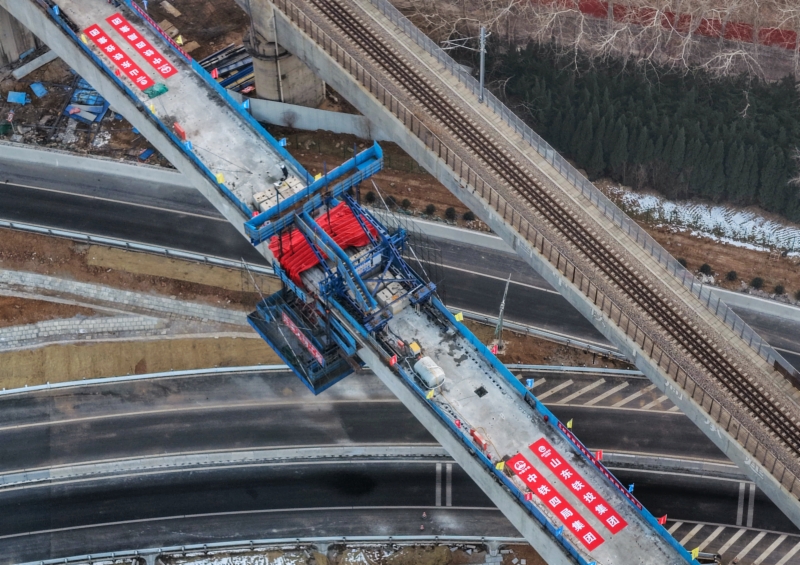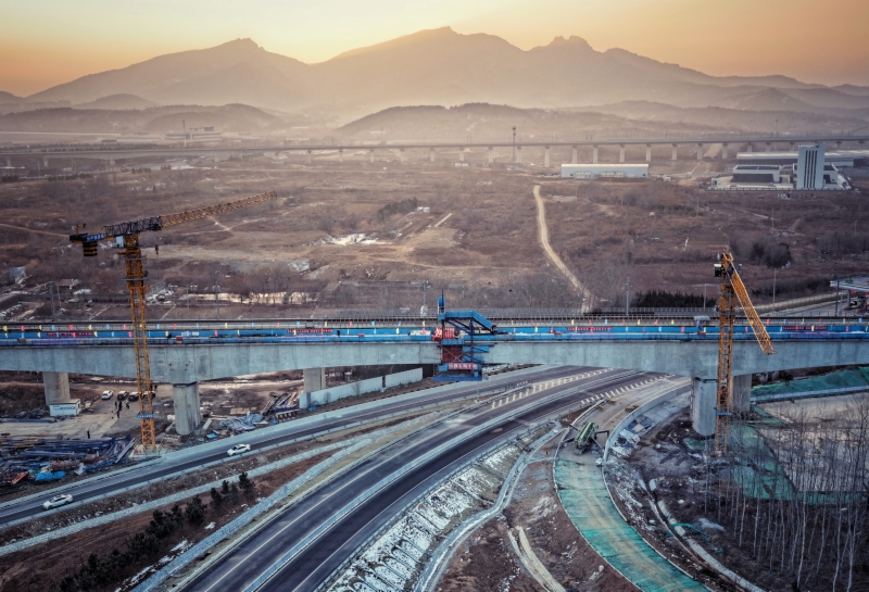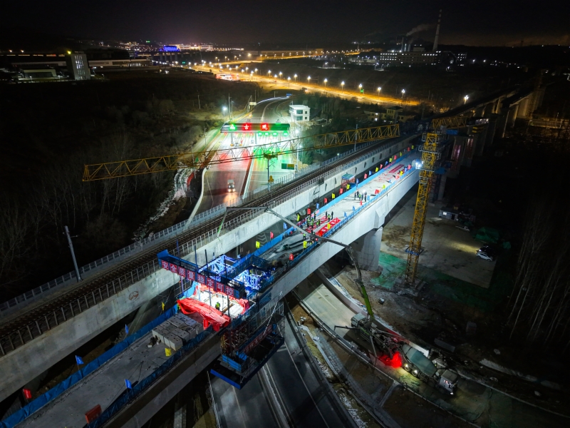 2月3日凌晨,由谈球吧权属济青高速铁路公司(以下简称“济青高铁公司”)建设的龙烟市域铁路臧家特大桥跨荣乌高速公路古现互通立交(65+112+65)米连续梁顺利合龙。至此,全线连续梁施工全部完成,运架梁通道全面打通,为项目按期建成通车奠定了坚实基础。